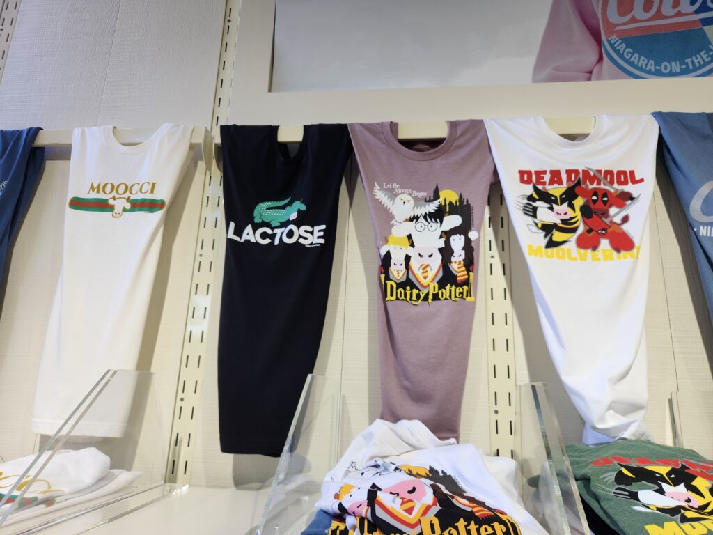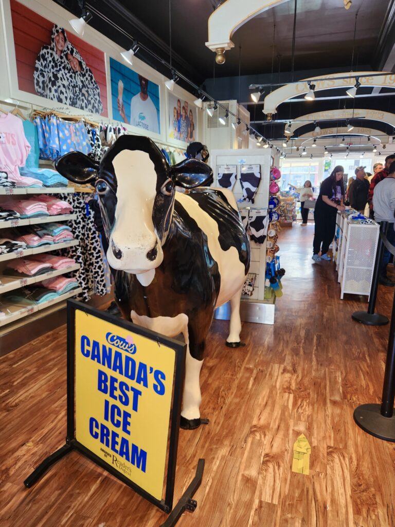 來到濱湖尼亞加拉一定要嘗嘗 COWS 的雪糕,這源自於愛德華王子島 Prince Edward Island 的雪糕店曾被讀者文摘的讀者選為加拿大最好味的雪糕,亦被 Tauck World Discovery 旅行團評為全球十大最好吃的雪糕店。除了雪糕外,COWS 還售賣他們自家牌的零食及週邊商品,他們的 T-shirt 還設定得滿可愛有趣,連老公都忍不住買了一件給他自己(哈),他買了下圖中類似鱷魚恤招牌的 Lactose T恤。