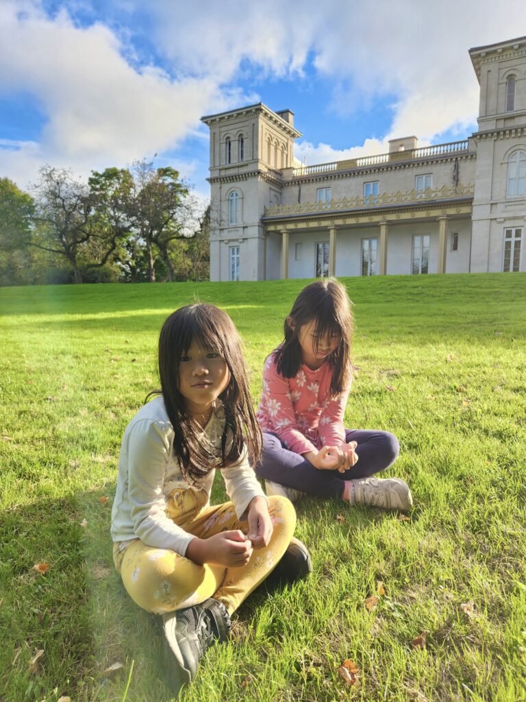 我們是接近黃昏時分到達,已過了導賞團的時間,所以唯有在古堡的周圍走走看看,鄧德恩堡的環境還頗優美的(當天看見幾組人士在拍家庭照或婚紗照呢),大宅前面有大一片草地,非常適合小孩跑跑跳跳放電,走到城堡的後方還可以遠眺漢密爾頓湖 Hamilton Lake 和火車。